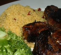 Here’s a great side that compliments many a main course. I’m in love with this toasted couscous because of it’s flavor and size. Israeli couscous is larger than regular couscous and has a firmer texture and stronger flavor — you can really taste the pasta. I jazz it up with tomato, onion and mint and I encourage you to improvise to suit your tastes.